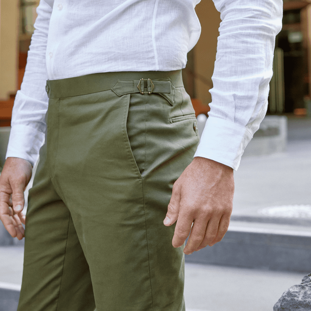 Elevate your style with our premium custom-made chinos, tailored to perfection for any occasion. Designed with side adjusters for a refined fit, these chinos eliminate the need for a belt, offering a sleek, modern silhouette.