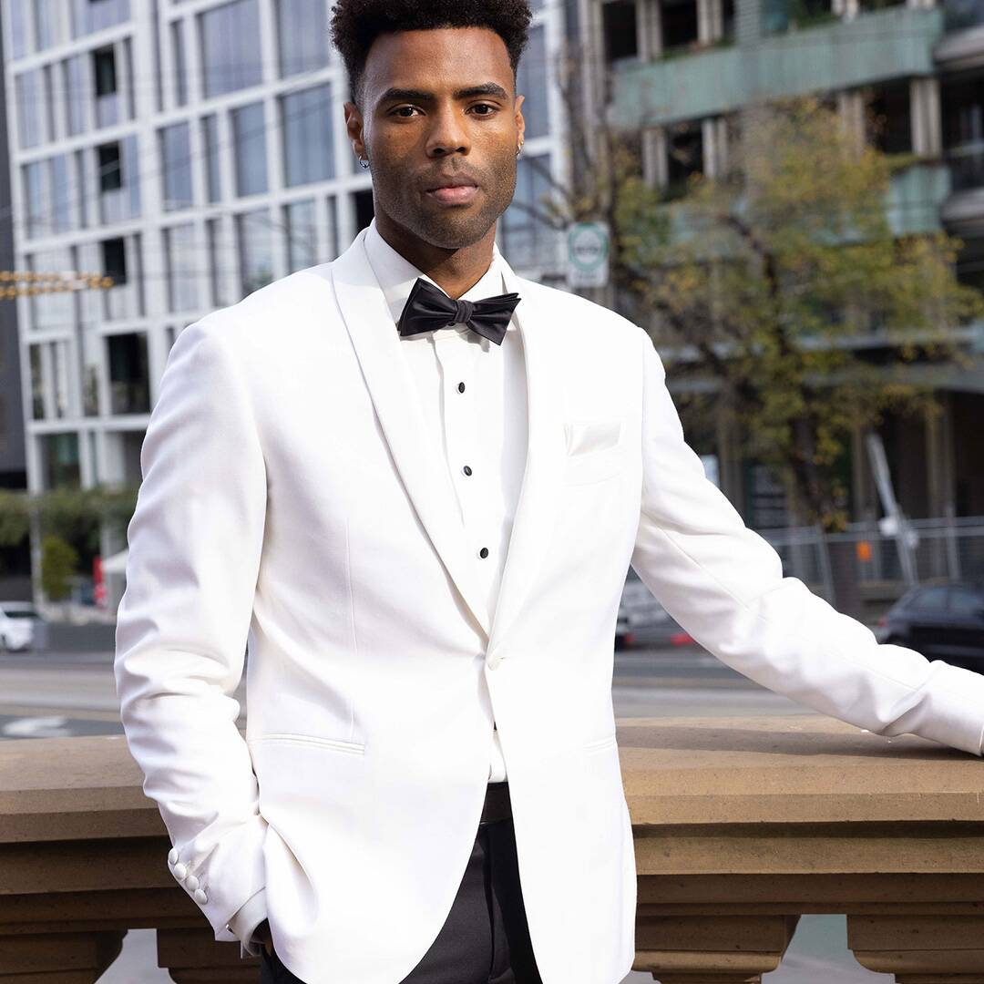 The Coleman is a classic pick for grooms on their big day. A tuxedo style jacket in ivory that is sure to make you stand out.