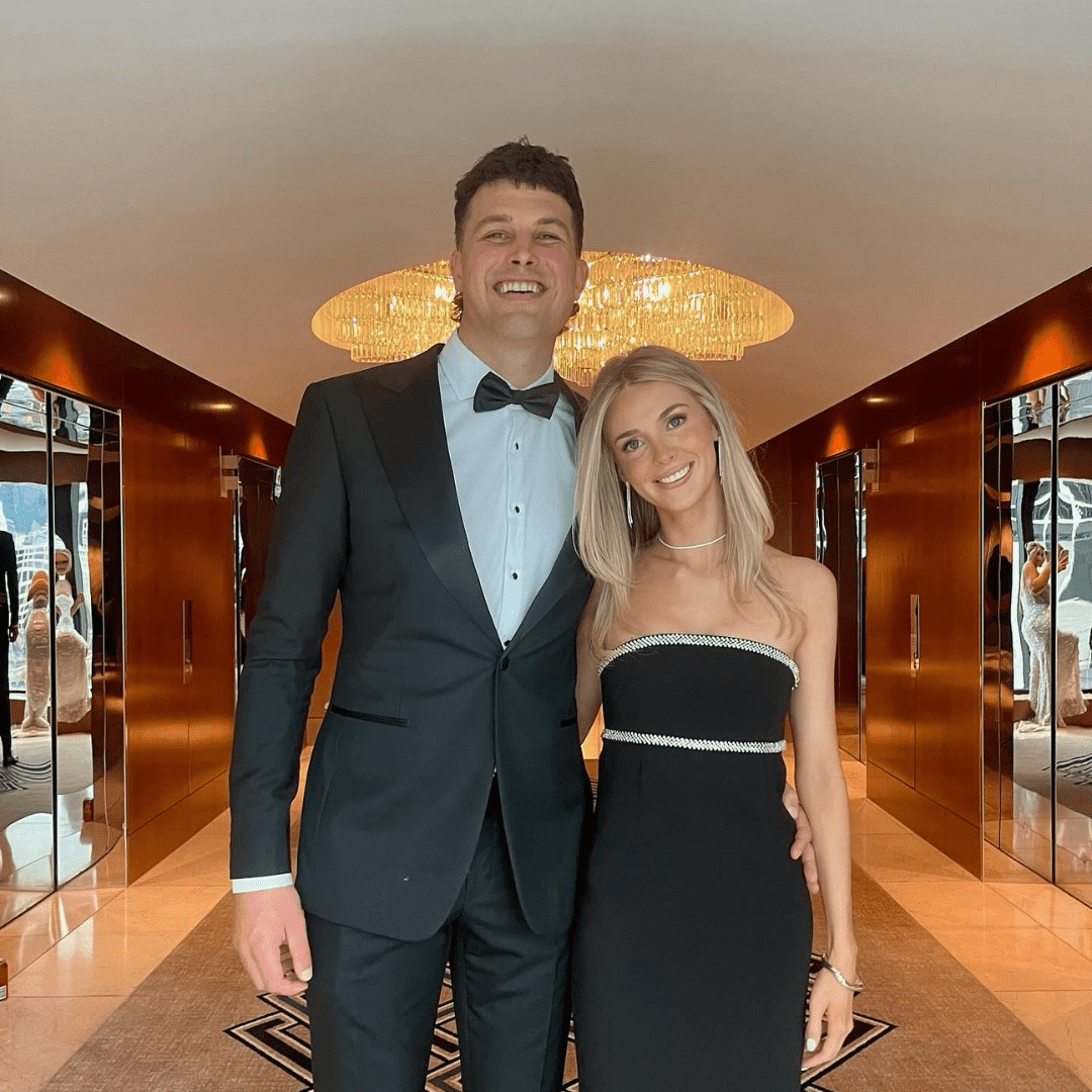 Known for his towering presence and dynamic play in the ruck, Rowan Marshall isn’t afraid to make a statement — and his choice of tuxedo is no different. Just like he dominates the field with his height and agility, this tux is all about standing out from the crowd. Channel Rowan’s confident charisma and go big with this bold paisley print. Because when you’re built like Rowan, blending in is never an option!
